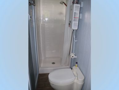 The camp houses offer private, indoor bathing and toilet facilities. Each is equipped with a propane-heated, rain-collection shower and maintenance-free, vented composting toilet.