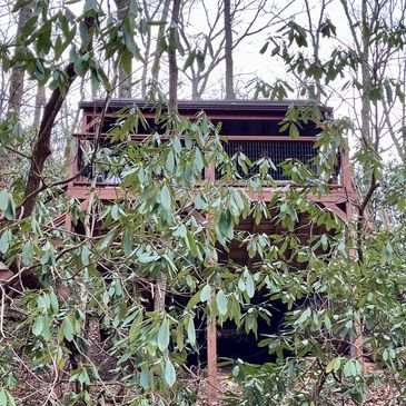 Treehouse #1 sits quietly on a northeastern facing ridge enjoying northern views of Snowbird Mountain and the eastern sunrise over Cherokee National Forest land towards Mt Sterling. The specific site for the treehouse was chosen based on naturally occurring tree cover and minimal construction impact to surrounding vegetation. It's as if t