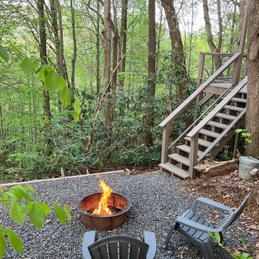 Each treehouse has its own private fire ring area and chairs. Firewood is available for $10 donation to a local Bear Rescue.