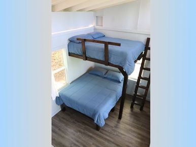 Rest from your adventures on the comfy, queen and full-sized beds. A spacious queen bottom bunk and lofted double mattress can accommodate four adult campers.